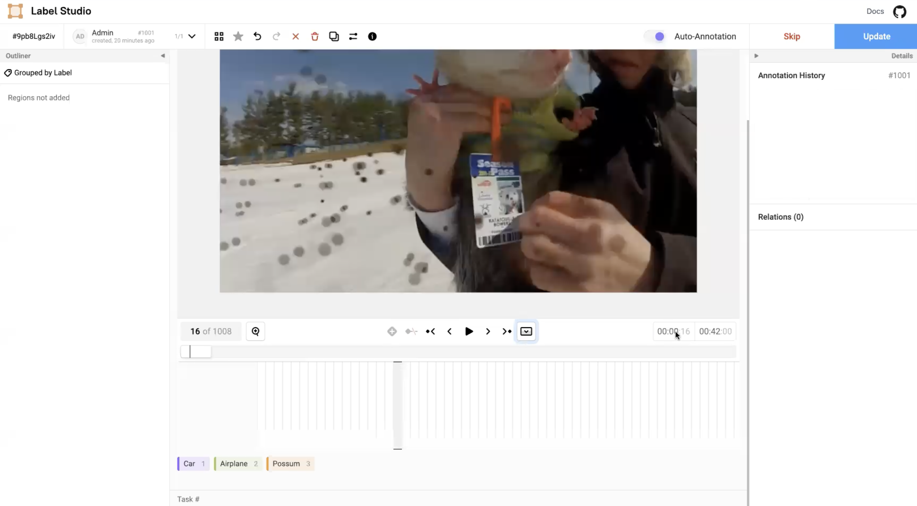In the Label Studio UI, the video interface presents the main video canvas with controls that allows annotators to more precisely label blurry images using the following operations: